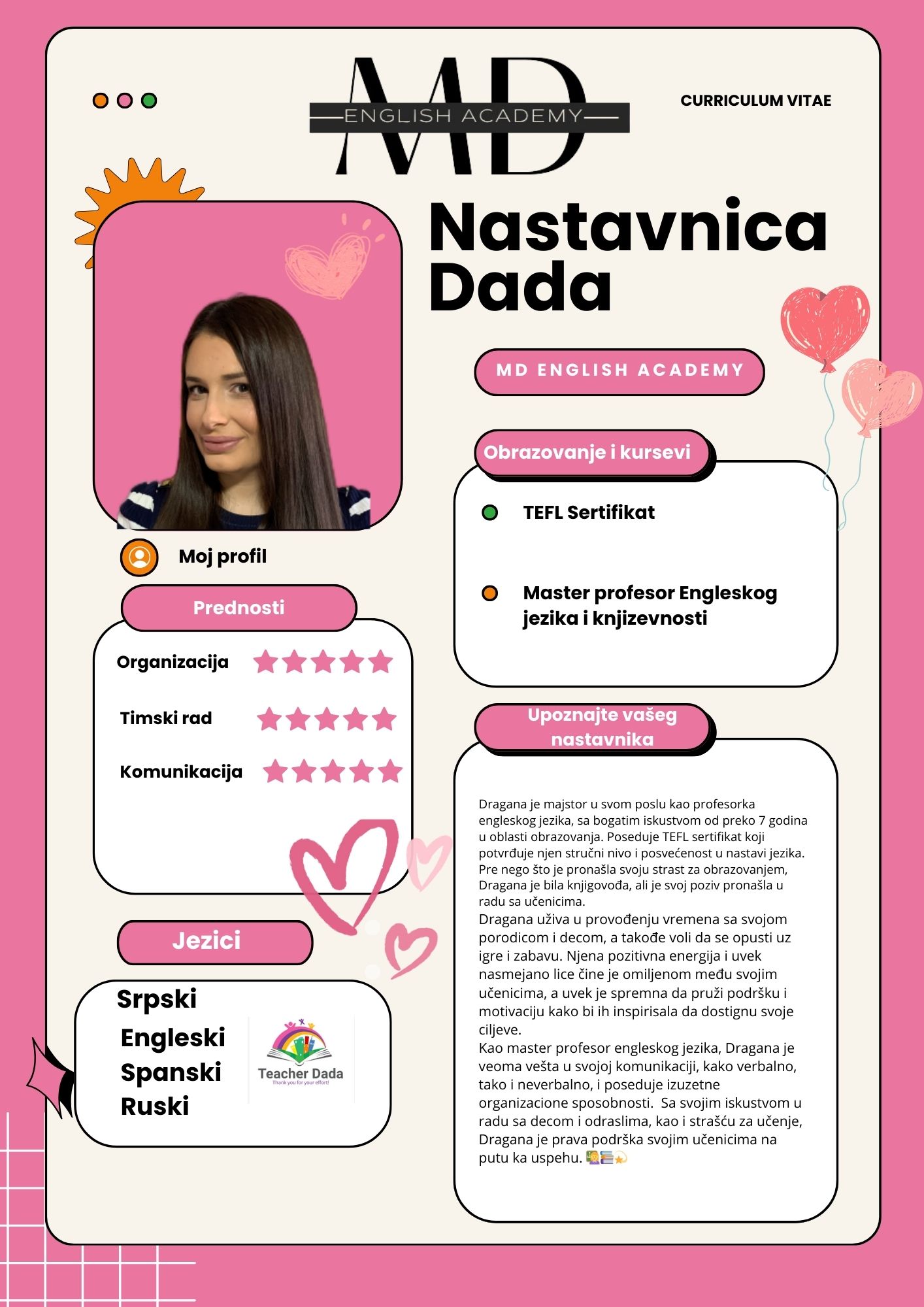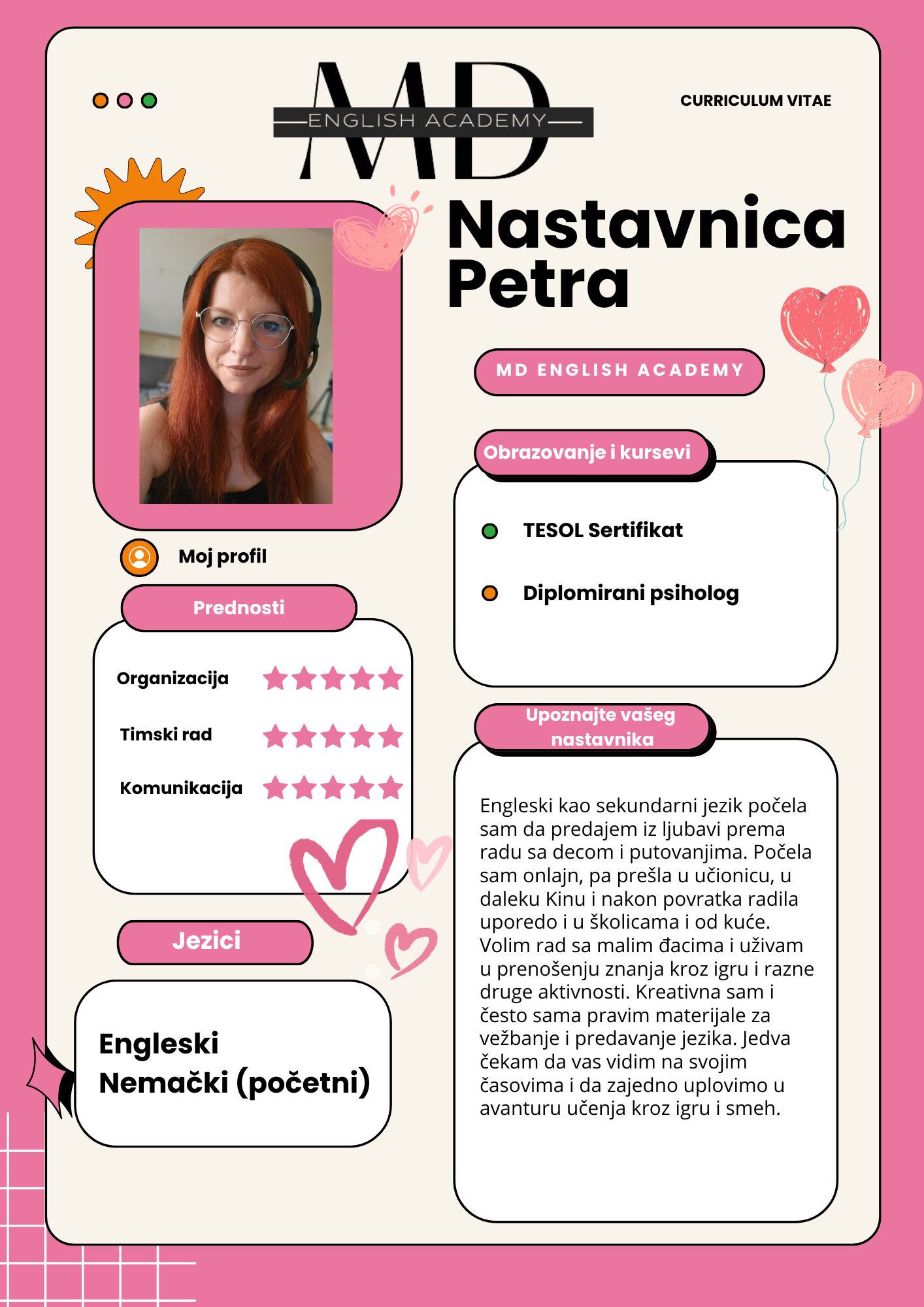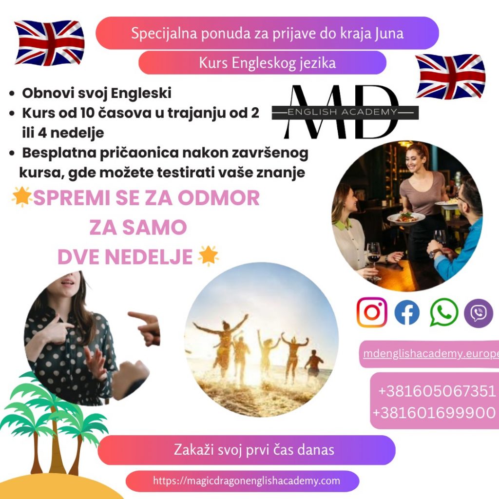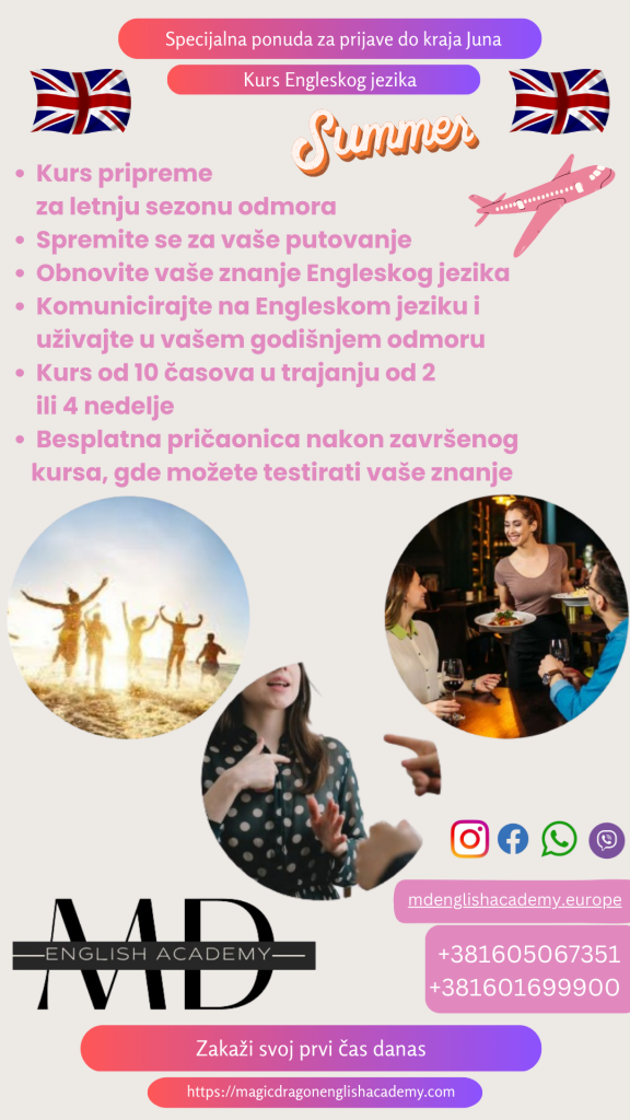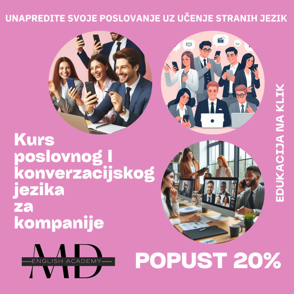 Maja : “Kurs konverzacije engleskog je zaista fantastičan! Nastavnici su veoma stručni, a atmosfera u učionici je super. Zahvaljujući ovom kursu, stekla sam samopouzdanje u komunikaciji i primetan je napredak u mom govoru i pisanju.”